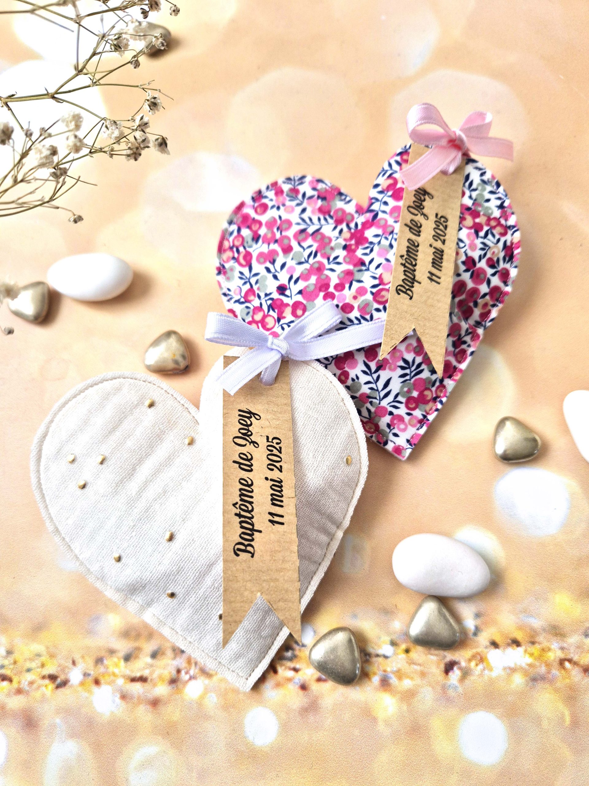Quoi de plus parlant qu’un cœur pour témoigner de votre affection à vos proches ? Mes pochons à dragées cœurs transforment le traditionnel cadeau d’invité en un véritable objet de décoration. Que ce soit pour un mariage bohème, des fiançailles ou un baptême, ils apportent une touche de poésie sur vos tables.