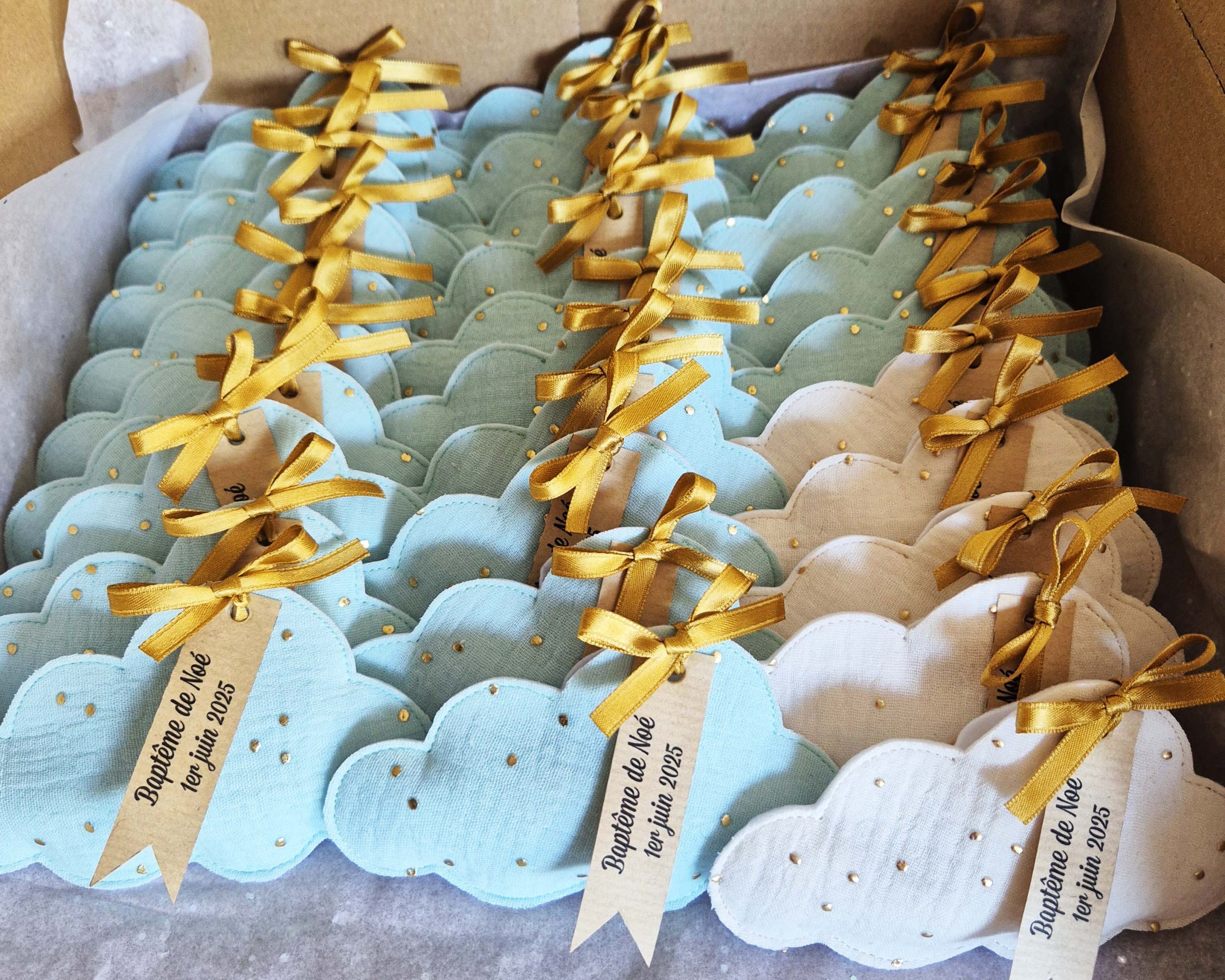 Le service de remplissage de pochons à dragées est la réponse idéale pour les parents et futurs mariés très occupés. En effet, je prépare vos cadeaux d’invités avec la même rigueur que mes créations textiles. Par ailleurs, ce service s’adapte à tous nos modèles, comme les pochons étoiles, les coeurs ou les modèles nuages. Ainsi, vous recevez une commande complète, prête à être offerte le jour J.