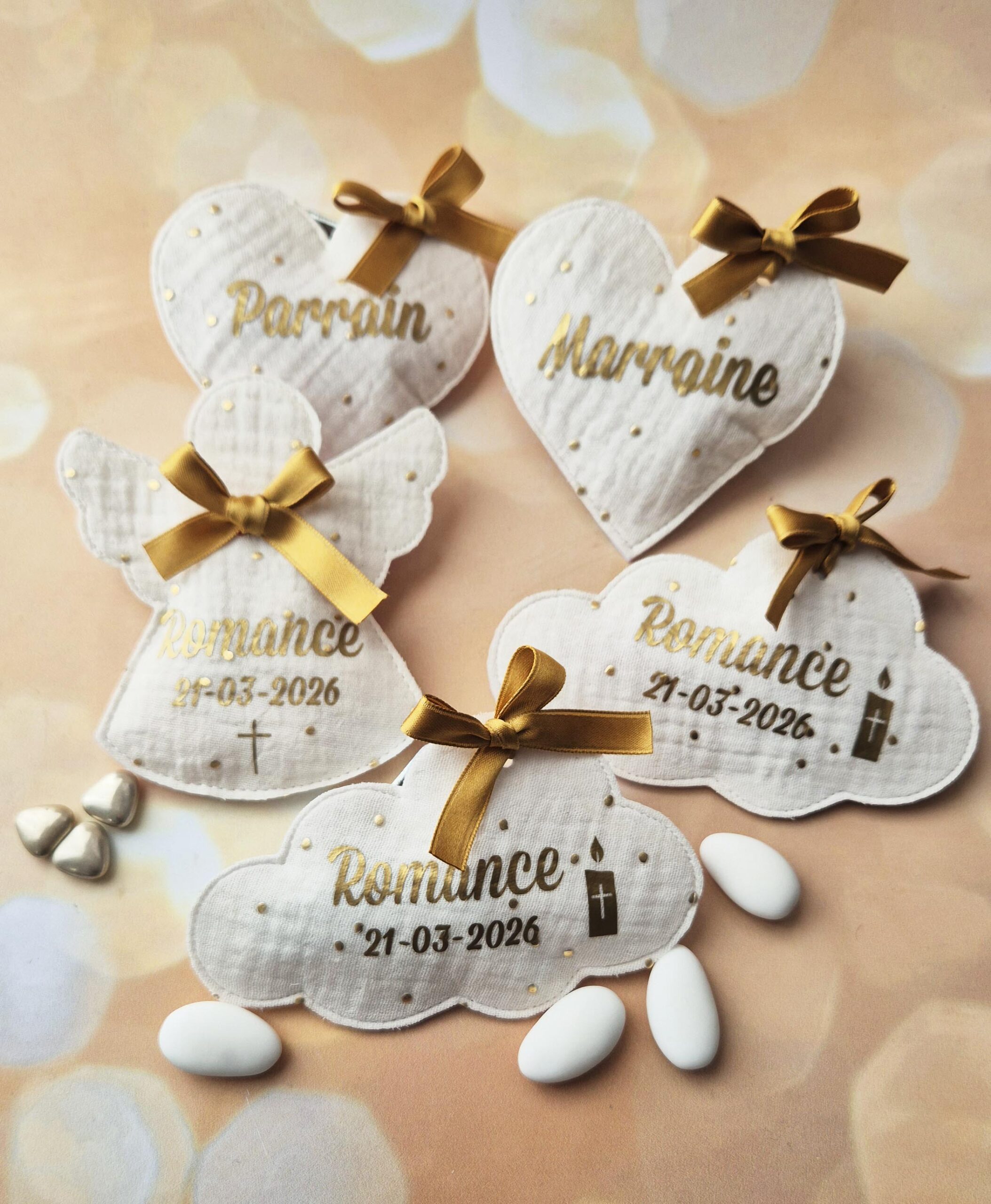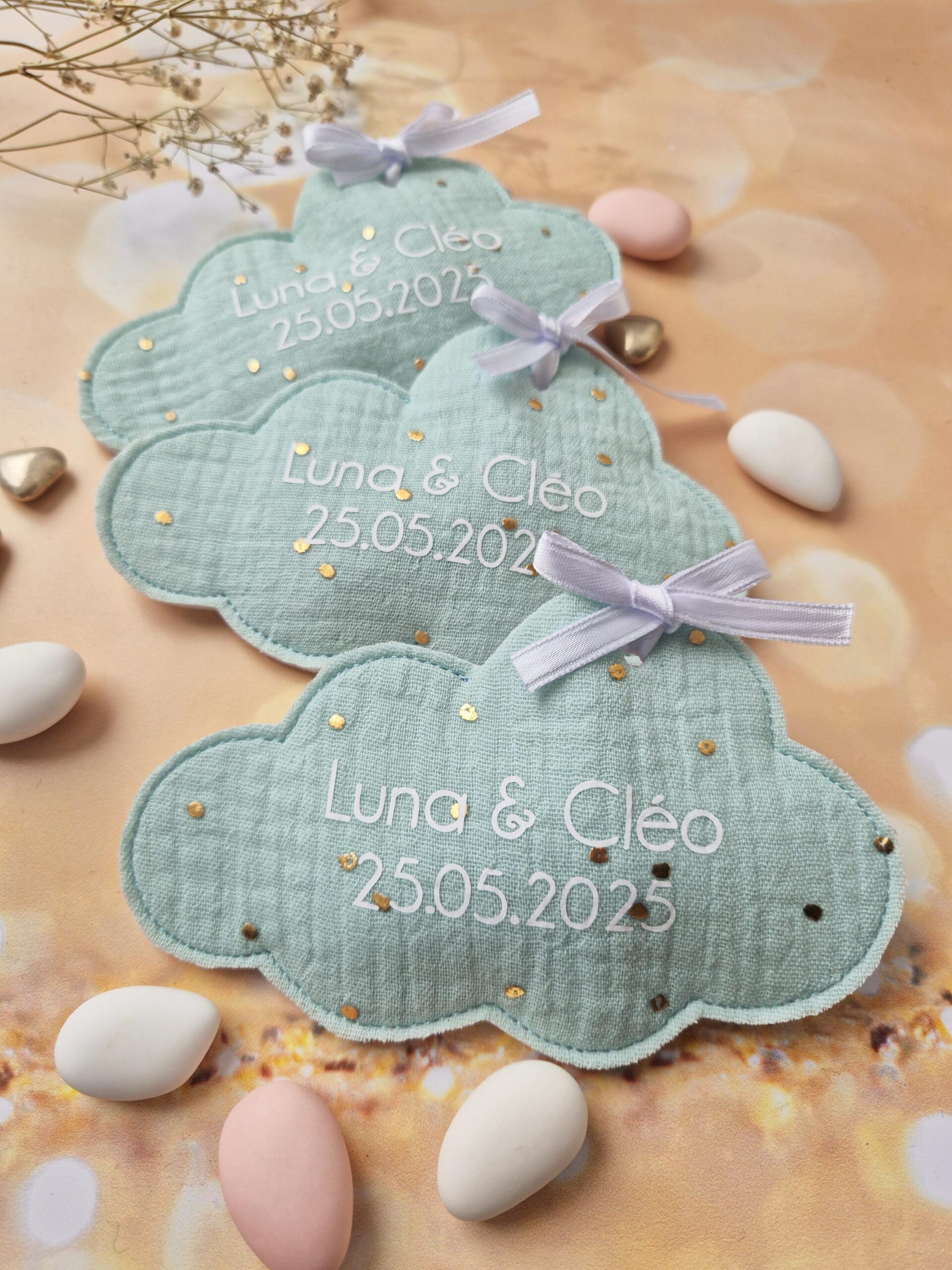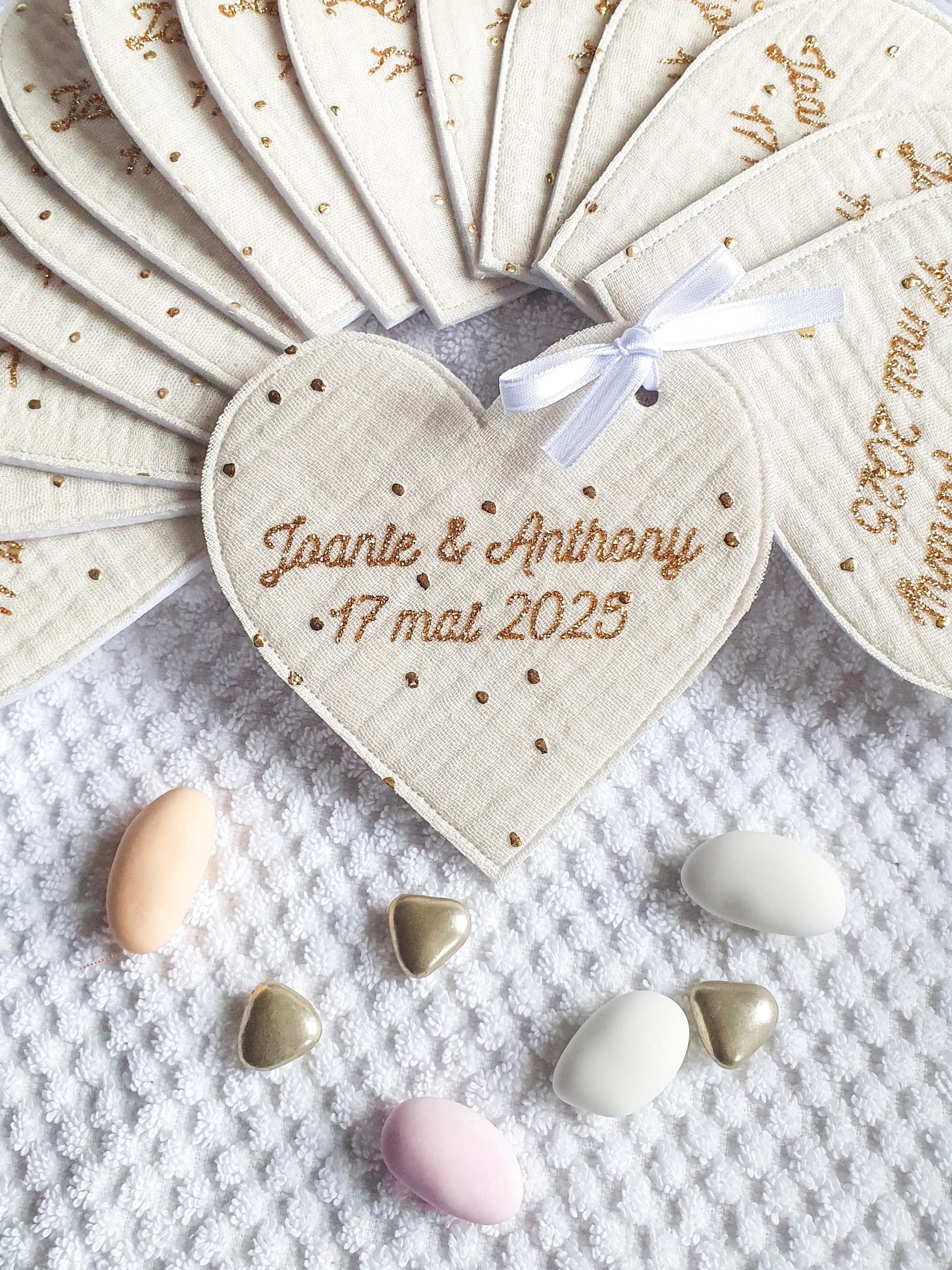 Ajouter un petit SYMBOLE ou un 2e PRENOM sur vos pochons à dragées de ma boutique Etoiles et Petits Pois.