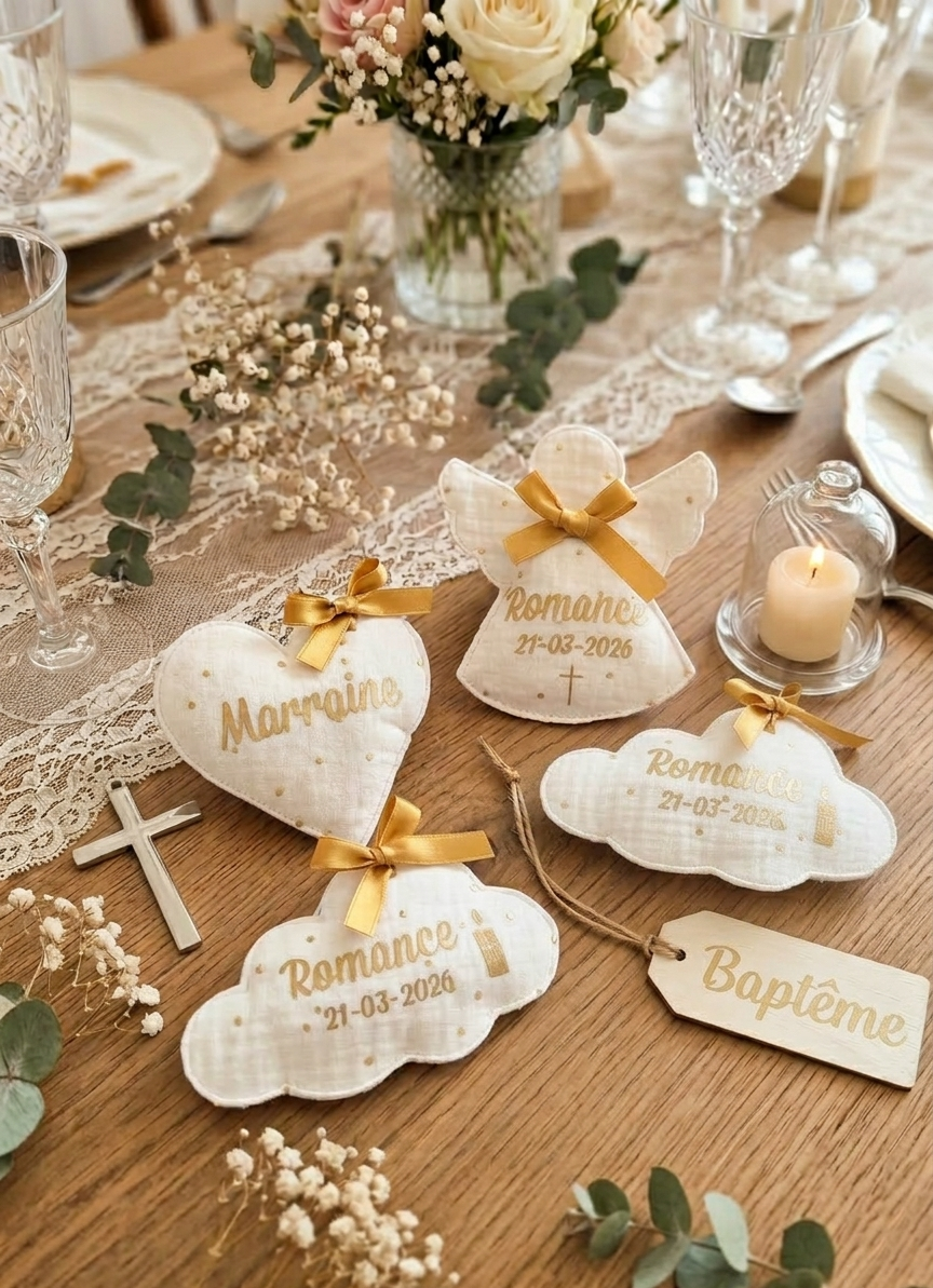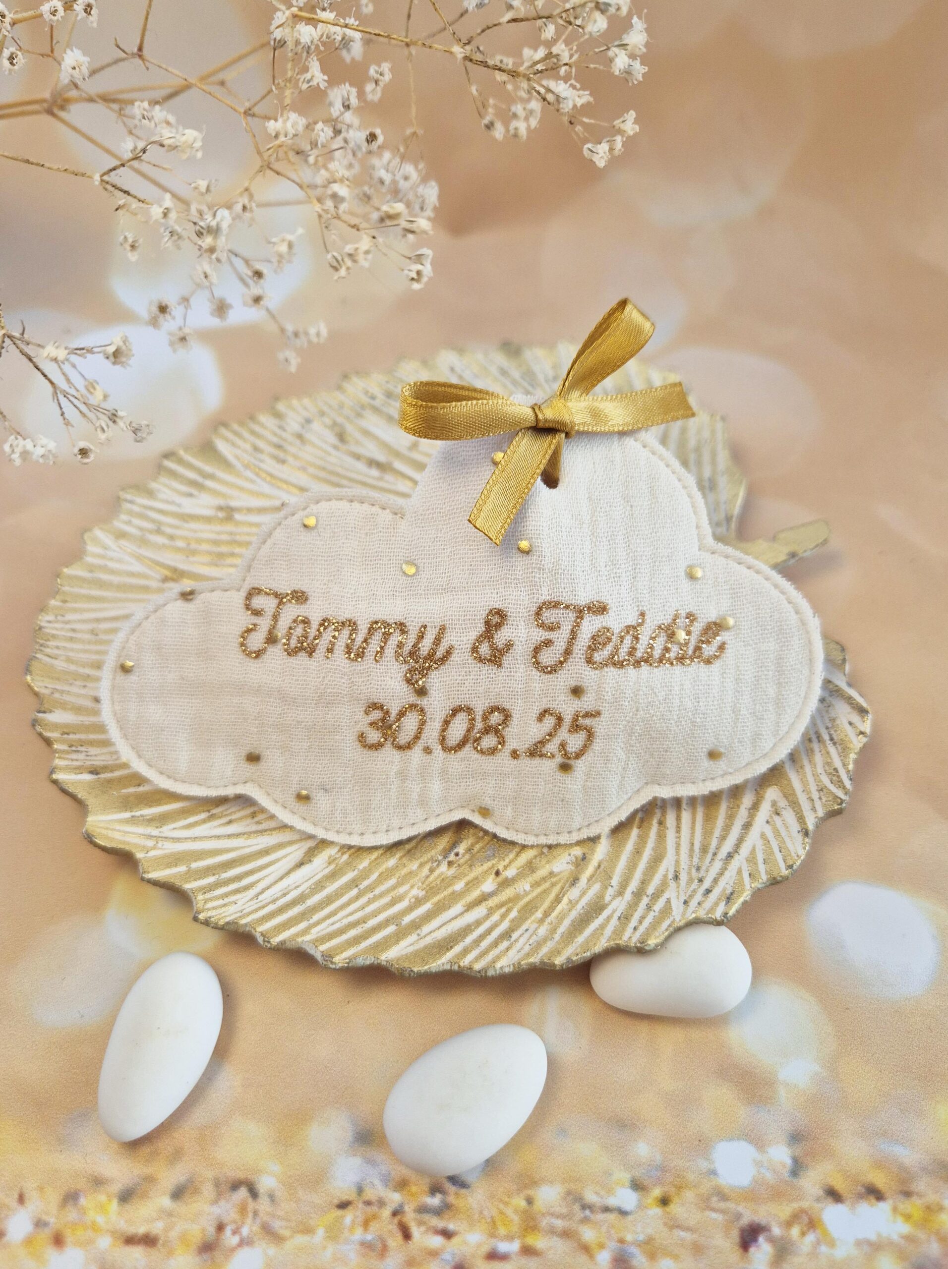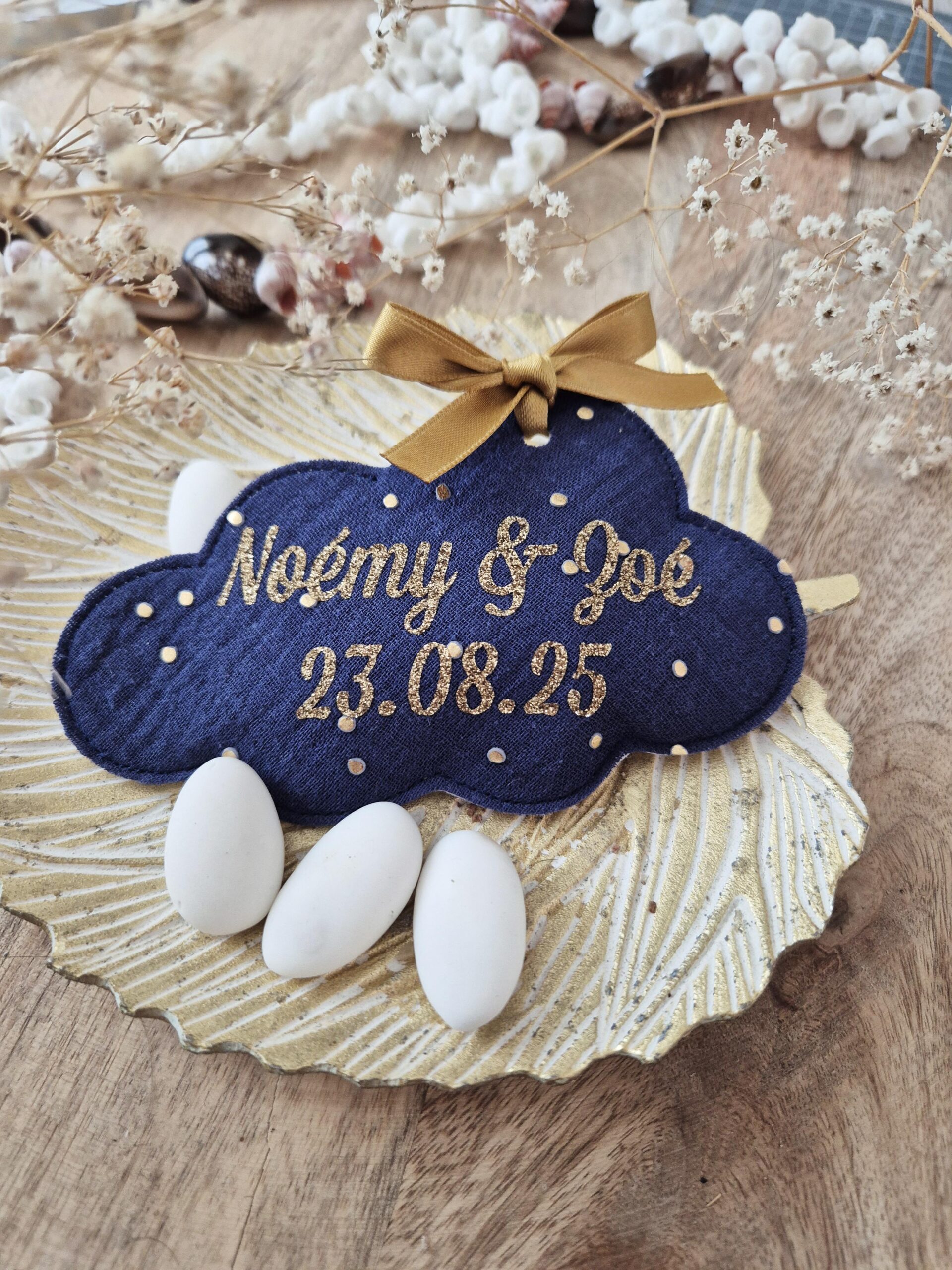Ajouter un petit SYMBOLE ou un 2e PRENOM sur vos pochons à dragées de ma boutique Etoiles et Petits Pois.